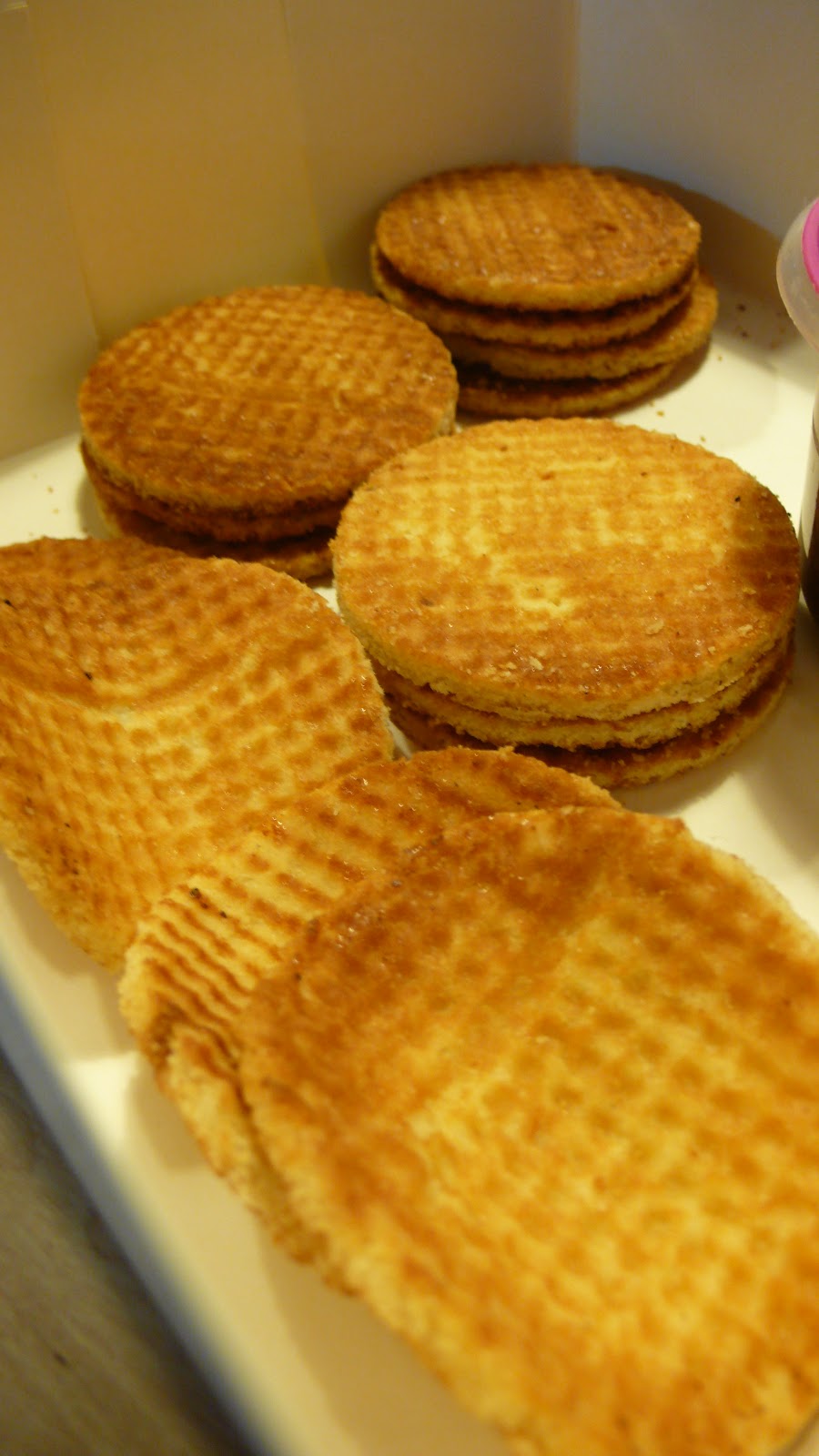 Les »stroopwafels »: deux gaufrettes collées avec du sirop au caramel. La texture est croquante et fondante!